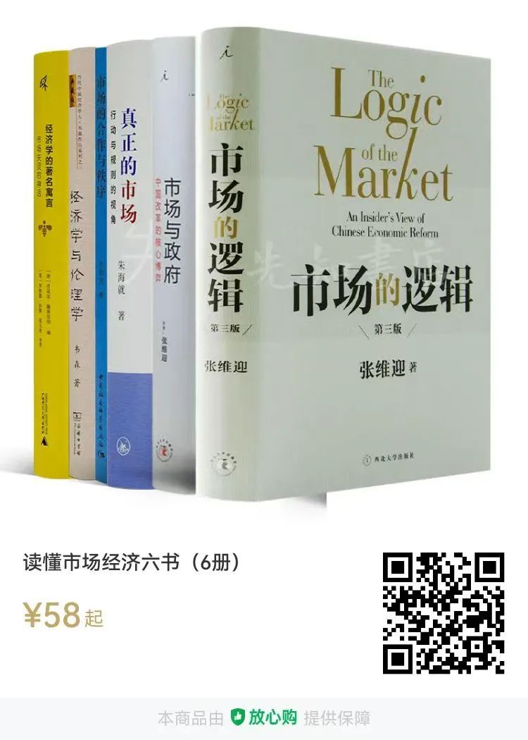 为此,店长荐书诚挚推荐文中引用的“读懂市场经济六书”: ]article_adlist-->张维迎《市场的逻辑》第三版、张维迎《市场与政府:中国改革的核心博弈》、朱海就《真正的市场:行动与规则的视角》、朱海就《市场的合作与秩序》、科斯《经济学的著名寓言:市场失灵的神话》、韦森《经济学与伦理学:市场经济的伦理维度与道德基础》。